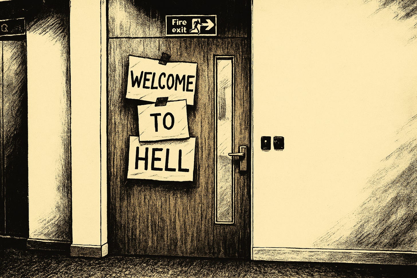 Back before covid afforded us the luxury of remote working, I would spend 45 hours a week in the depths of hell. The walls are somehow blindingly bright like white gloss, yet duller than dishwater at the same time. The most clinical straight lines and jarring right angles make up the desks, screens and any of the meaningless “Brand Values” that are plastered all over the walls. Any spare wall? Just cover it in brand values, obviously! Some of the brand values that cover the walls are from about 4 years ago, since which time they’ve changed twice. Nobody cares. Why would they? They don’t mean anything.